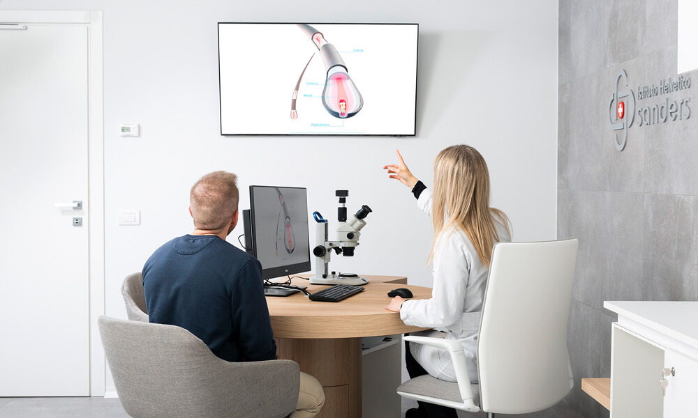 I percorsi di trattamento Sanders prevedono controlli periodici con un esperto tricologo dedicato, che utilizza strumentazioni avanzate per monitorare la salute del cuoio capelluto e l’efficacia dei trattamenti. Ogni verifica consente di adattare il protocollo alle esigenze del momento, garantendo risultati duraturi e la massima personalizzazione.